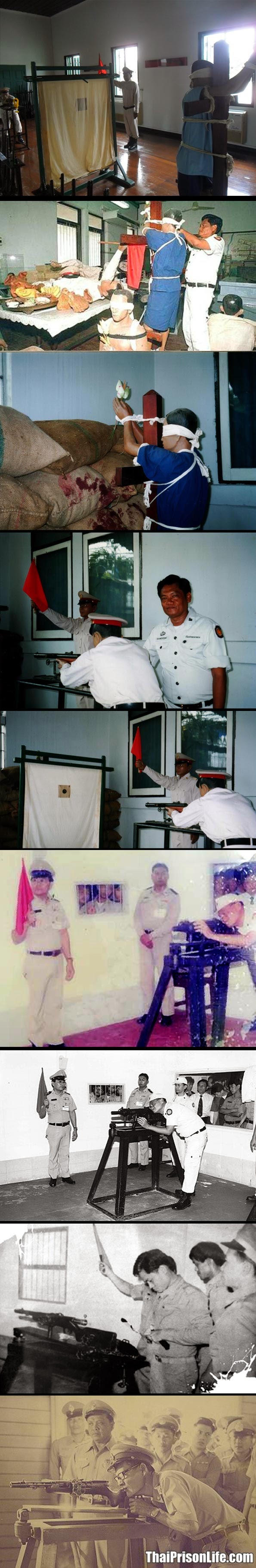 Sehingga 2003 pesalah jenayah berat dijatuhkan hukuman mati dengan ditembak menggunakan mesingan. Teknik hukuman mati ini mungkin nampak ganas tetapi sebelum 1934 teknik hukuman mati utama Thailand adalah dengan hukuman pancung dengan menggunakan pedang. Lebih dari 280 penjenayah dikenakan hukuman mati dengan ditembak. Majoriti dijatuhkan hukuman ini kerana membunuh dan merompak sehingga mengakibatkan kematian.